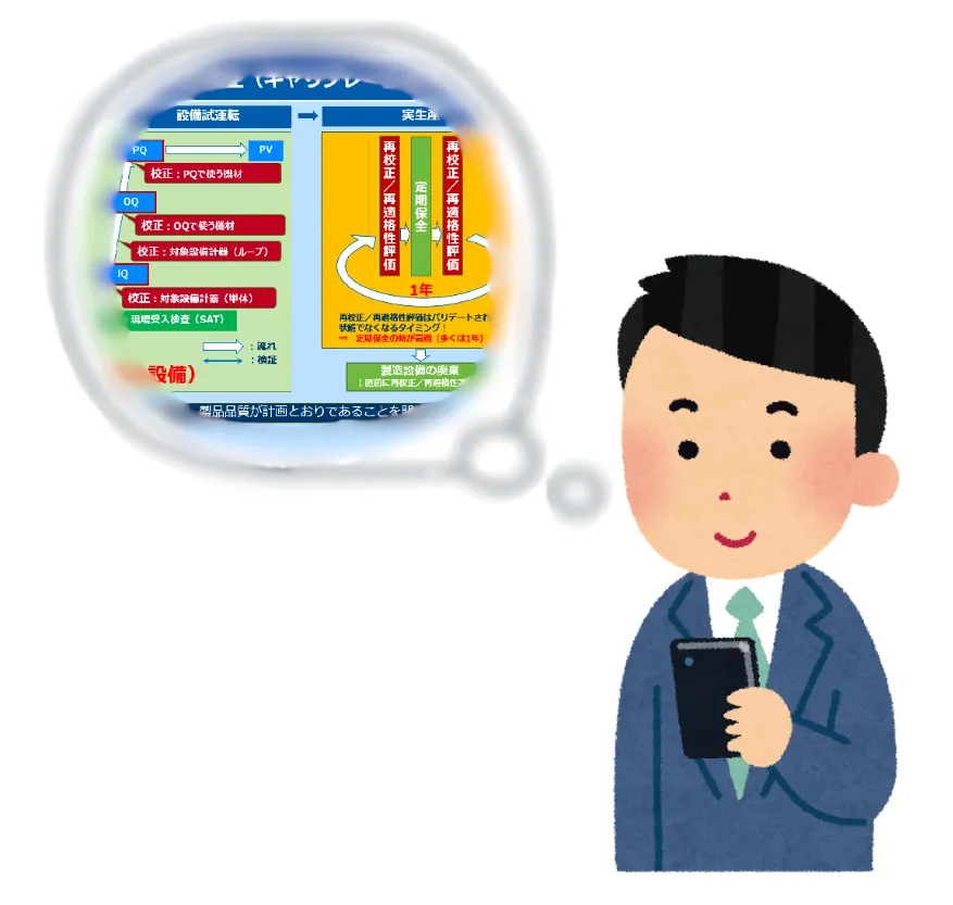 - 前回、“ 導入時だけじゃない!製造設備の「バリデーション」 ”をお読みいただいたお客様より、「 “定期的な再バリデーション” 、があるのなら、 “変更時の再バリデーション”も必要になり、考慮すべき点があるのでは? 」とのご意見をいただきました