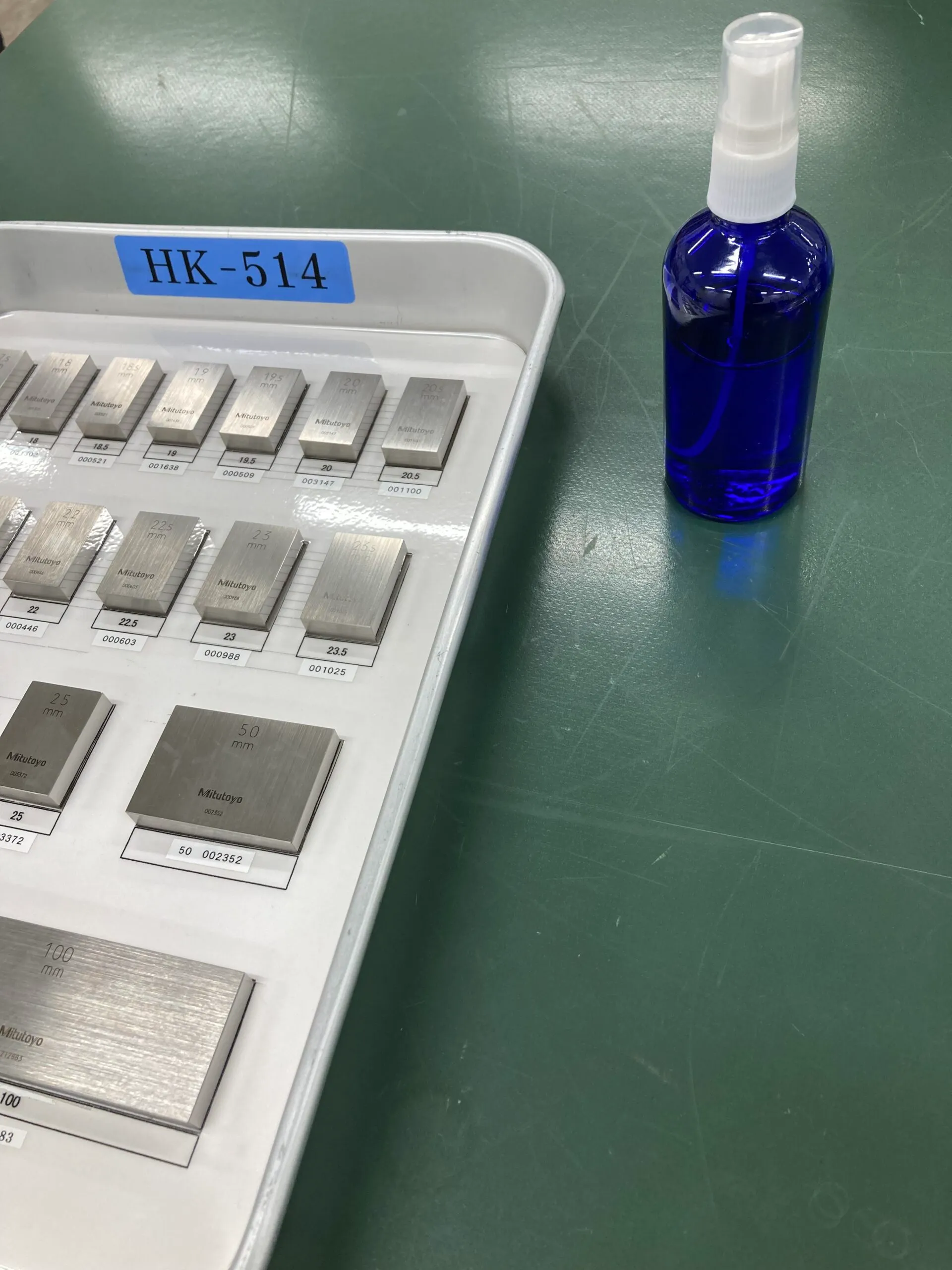 • 日々の校正作業に欠かせない清掃作業の必須アイテムである 「 エタノール 」 は、甲府サービスステーションではとても使用頻度が高く、 「 一斗缶 」 で購入しています。この一斗缶は危険物保管庫にて管理され、そこから小瓶に取り分けて校正室まで持ち運び、校正品の清掃作業に使用されます。