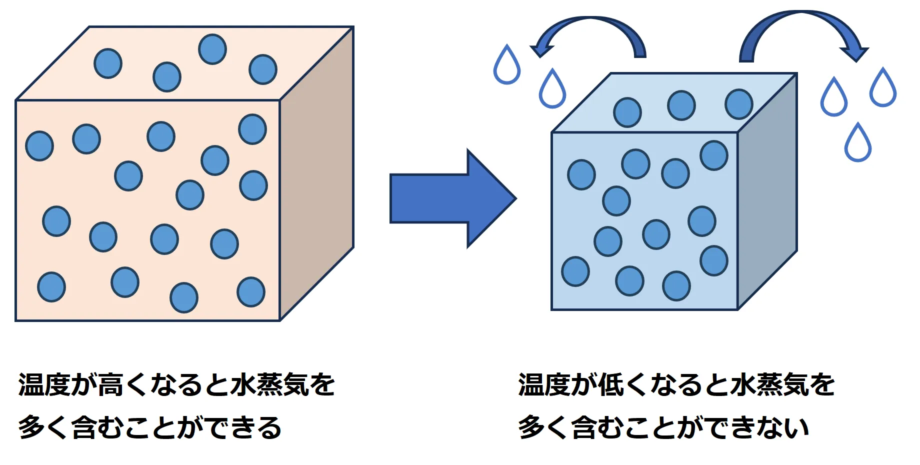 - また、各温度において空気が含むことのできる水蒸気の限界値を飽和水蒸気量といいます。