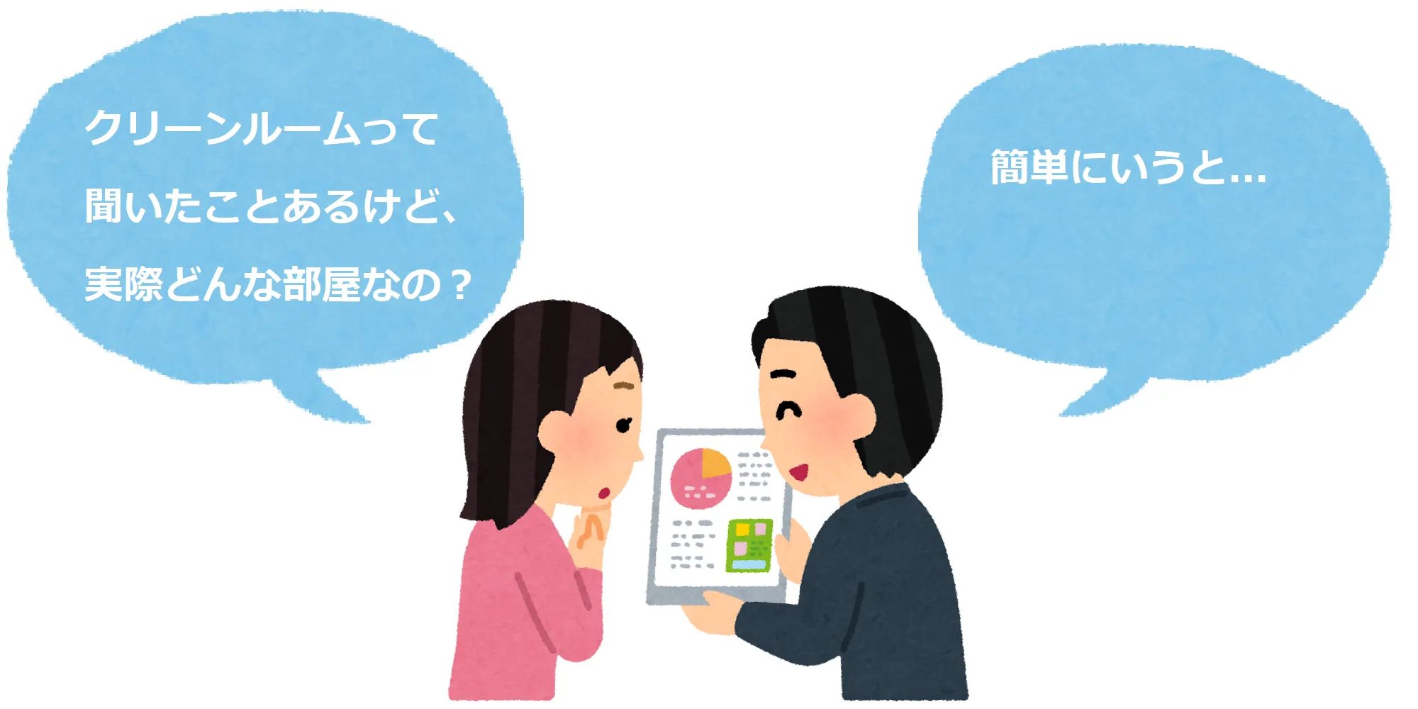 • クリーンルームとは、空気中の目に見えないような、ほこりやゴミの混入を防ぐための部屋であり、医薬品や化粧品、精密機器など製造工程において異物を付着させない目的で使用されます。