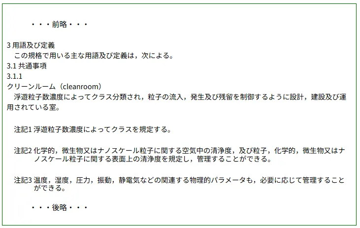 • JISでのクリーンルームの定義は、以下のようになっています。