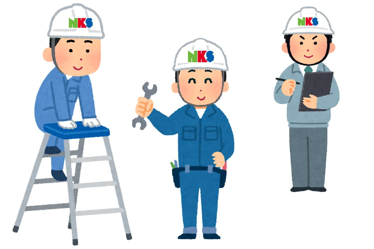 - 出張校正の際には、お客様の環境に適応する保護具(保護帽子、ヘルメット、墜落制止用器具等)を着用し、安全に努めながら校正作業を進めております。