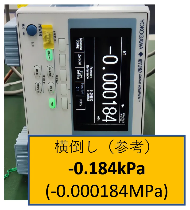 - 横置き(水平)を基準としたとき、垂直に置いたとき(縦置き)に差異が発生、参考に横倒しにしても差異が発生