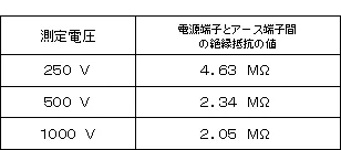 測定電圧が1000Vの場合、絶縁抵抗は2.05MΩ となり - 測定電圧が高いほど、絶縁抵抗の値は小さくなった。