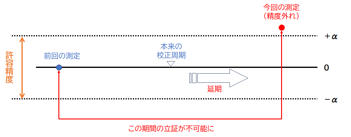 最後に校正をした時点から廃棄までの期間の状態確認が出来ず、製品保証がデータ的にできなくなります。